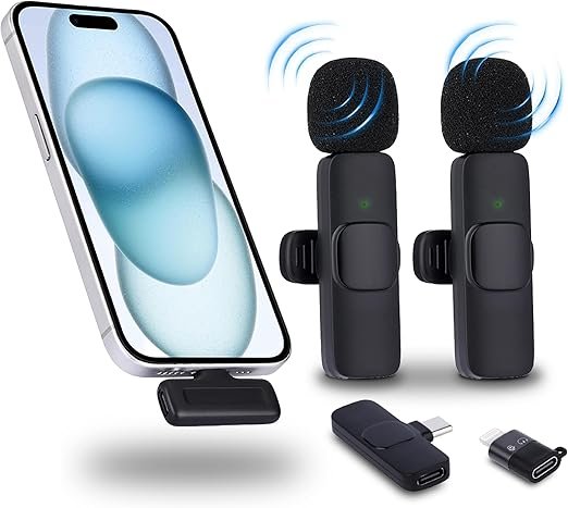 NK Micrófono Inalámbrico – Micrófono Lavalier Wireless para iPhone/Android/PC/Laptop, Plug&Play, Pack de 2 Micrófonos Solapa para Grabación de Tiktok/Twtch/Youtube/Vlog, Reducción de Ruido, Sin App